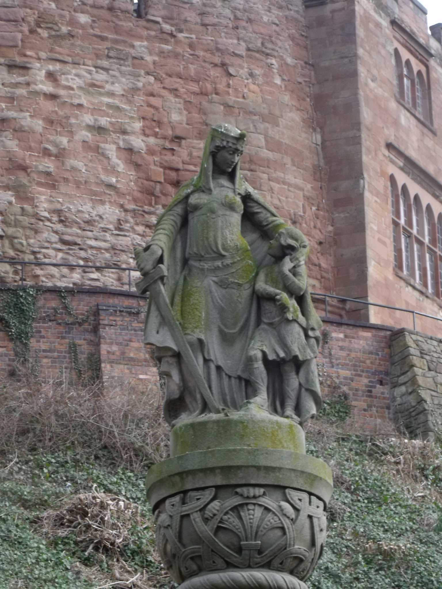 Aethelflaed fortified Tamworth with the construction of an earthen burh in 913, and it was also the place of her death in 918. The statue itself dates from 1913 and was commissioned in her memory.