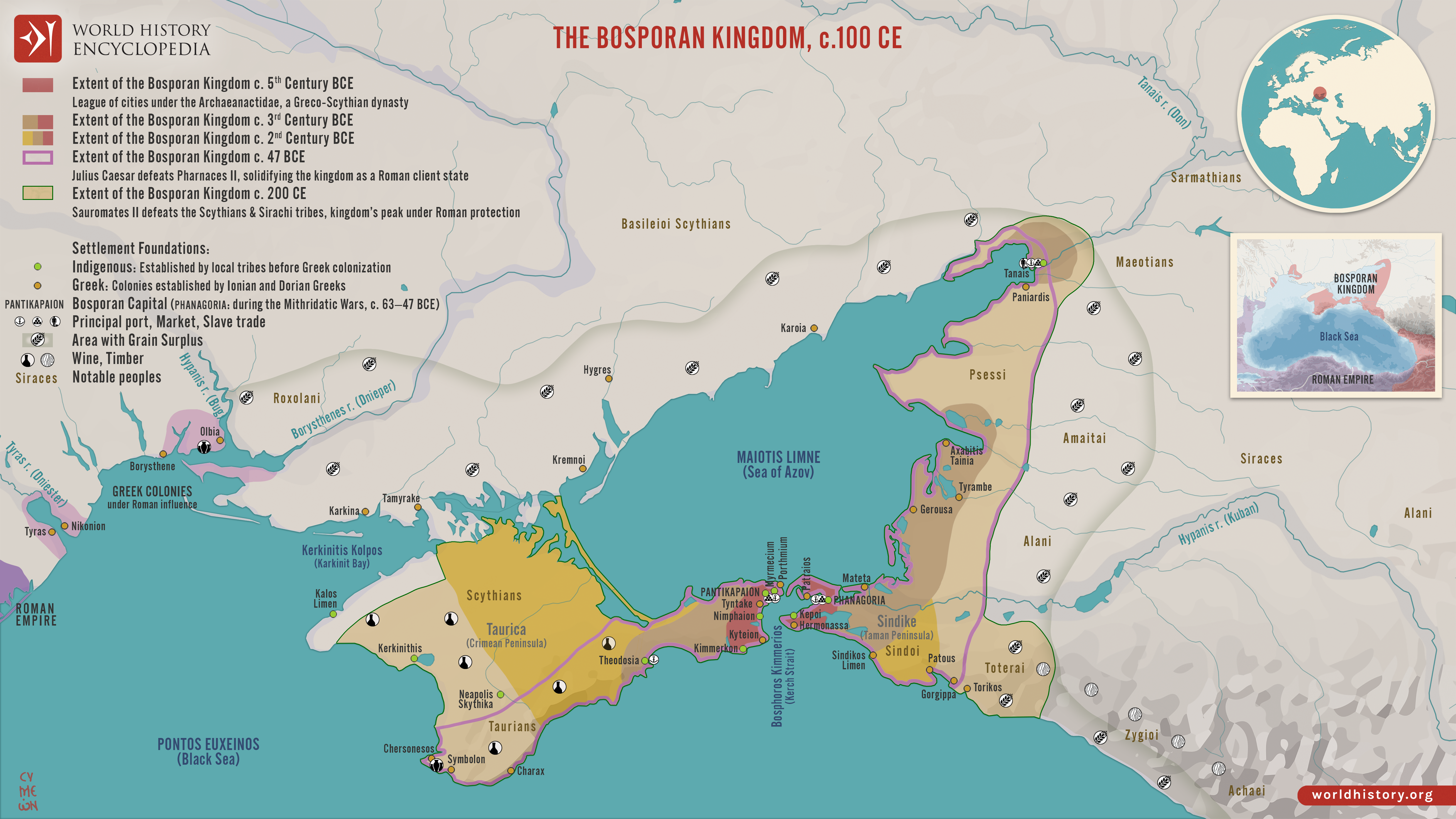 Netchev, Simeon. "The Bosporan Kingdom, c.100 CE." World History Encyclopedia. World History Encyclopedia, 10 Dec 2024. Web. 08 Jan 2025.